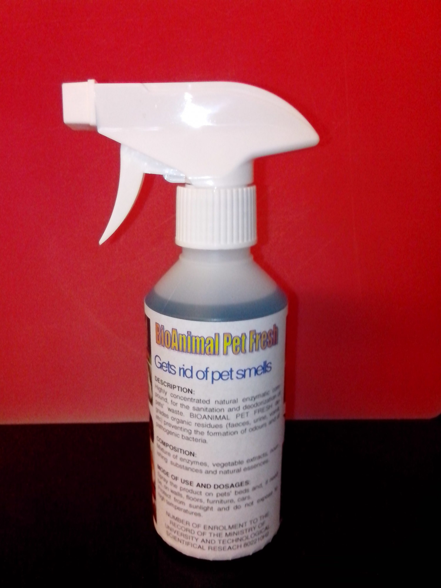 Petfresh contains natural enzymes and bacteria and is used to treat areas of faeces, urine and vomit from dogs, cats and small animals. Spray directly on carpets, fabrics etc where an animal accident may have occurred. Petfresh will degrade the residue and remove bad odours.